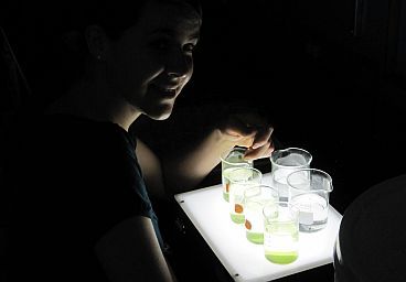 Daphnia. Our main challenge is reminding him that, as animals, we feed Daphnia food, not
